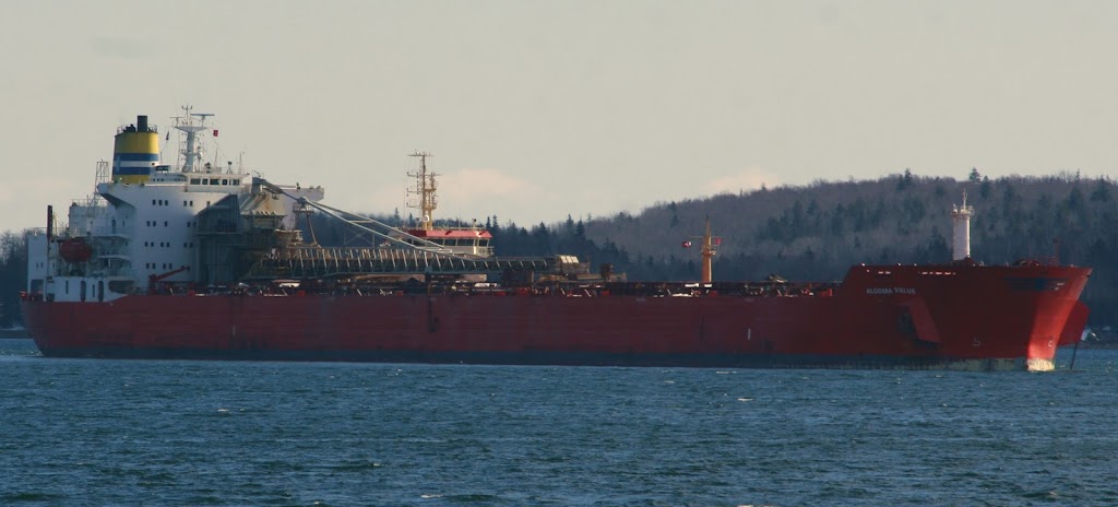 Algoma Value spent yesterday at anchor taking bunkers. Recently purchased by Algoma from the Torvald Klaveness Group of Oslo, as part of a 4 ship sale, she is the Ex Baldock. Baldock was an infrequent visitor to Halifax, Last stopping here for bunkers in August 2011. The Ship continues to