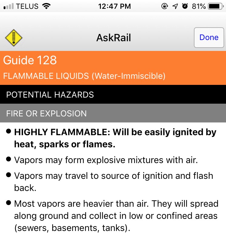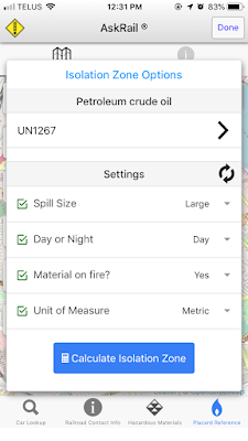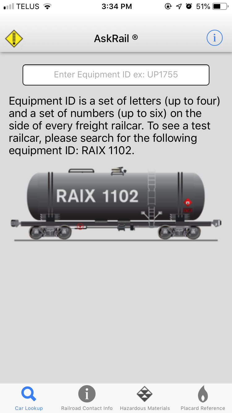 The Train view is handy if you can only see a single car, or a distant car away form the incident. the app will tell you the number of cars, and then the contents of each car in order, whether it is empty or loaded, and highlight cars carrying hazardous materials in red.